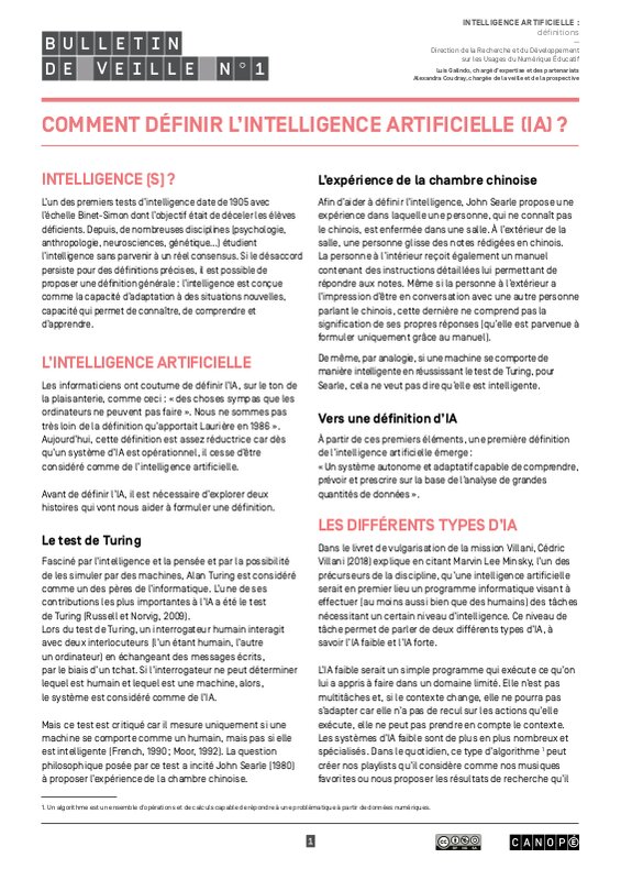 « L’Intelligence Artificielle est un ensemble de technologies numériques, mathématiques, statistiques et algorithmiques évoluées qui permettent d’imiter ou d’étendre l’intelligence humaine à l’aide de machines capables d’apprendre, de « raisonner » et de prendre des décisions. »