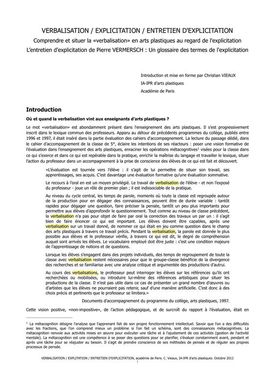 La verbalisation : connecteur entre pratique et culture. | Enseignement des ARTS PLASTIQUES