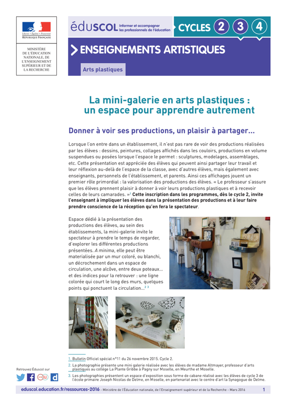 au mur, au sol, sur des tables, des socles, suspendues au plafond, exposées hors les murs, dans le hall de l'établissement , dans une galerie d'art à vocation pédagogique...